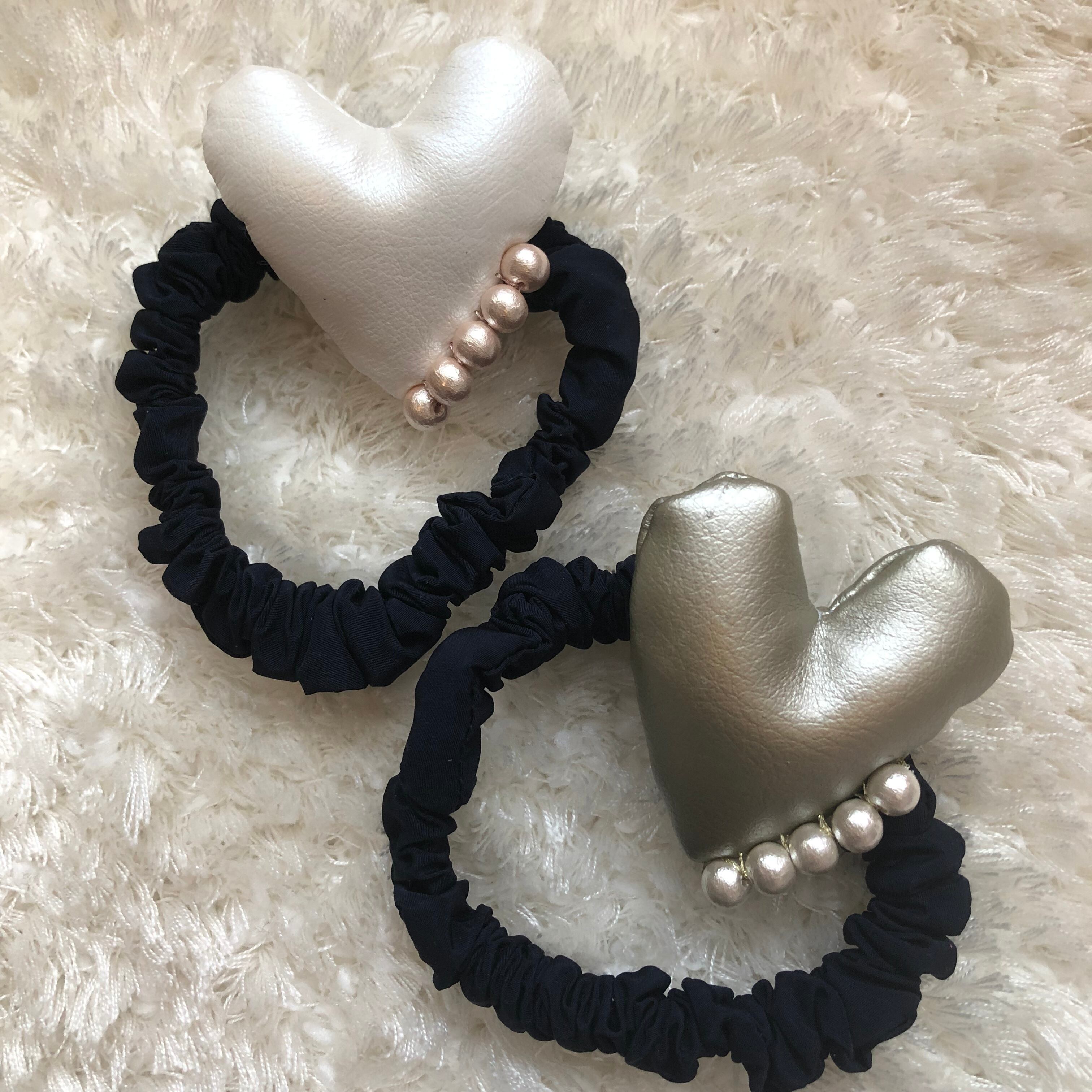エコレザーを使用した、ハートのシュシュです。