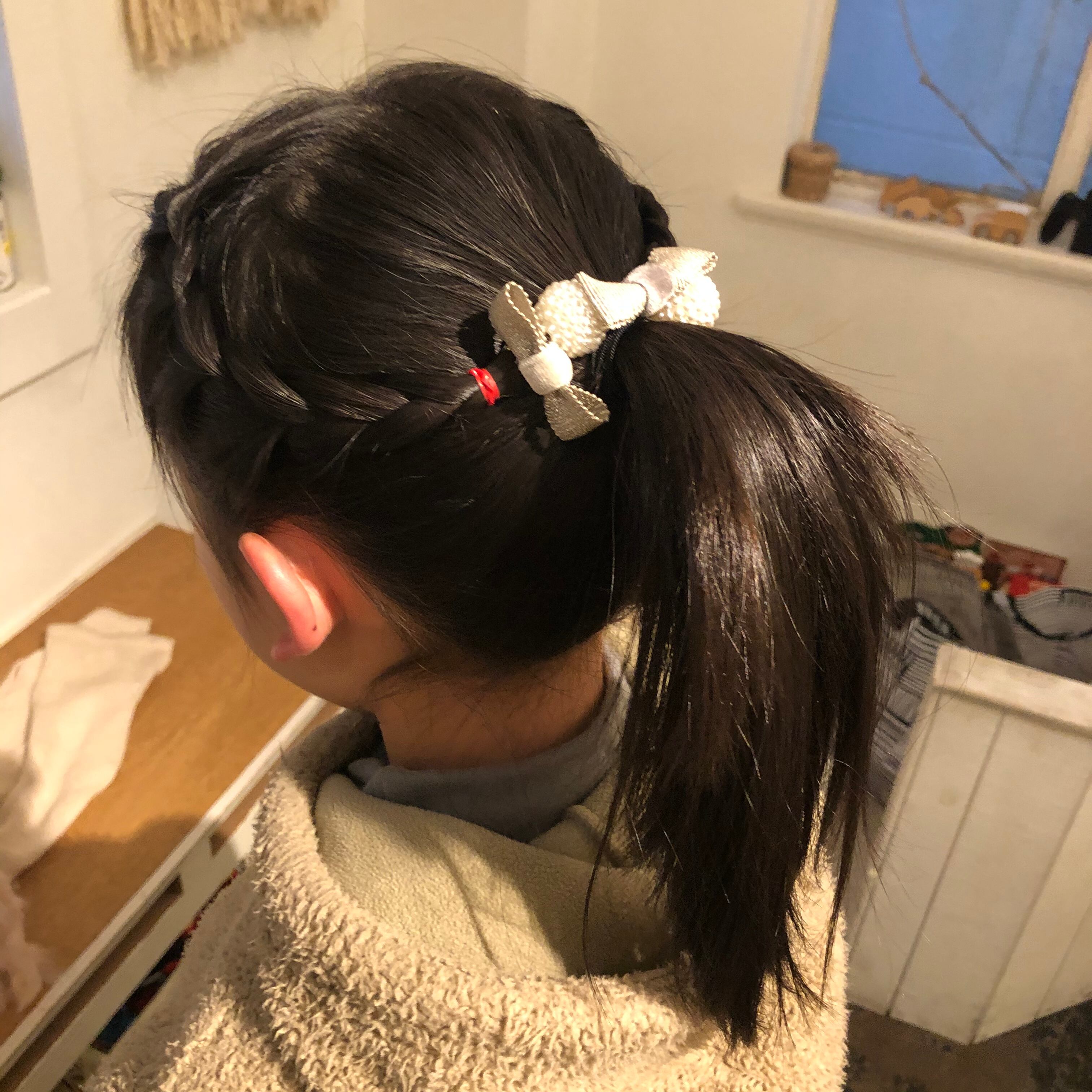 ベリービーズとリボンの組み合わせがシンプルながら華やかであわせやすいゴムです。